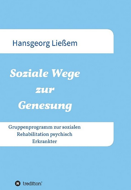 Soziotherapie verhilft zu mehr Teilhabe am Leben in der Gesellschaft. Im neuen Buch von Hansgeorg Ließem wird dafür geworben, nicht nur Einzelberatung hierfür anzubieten, sondern ein Gruppenangebot zu machen. “Erst in Gruppen integrieren, dann sozial rehabilitieren!” Ein sehr praxisnahes Buch, das 2017 unter der ISBN 978-3-7439-1716-3 erschienen ist und zum Preis von € 19,90 über den Buchhandel erworben werden kann.